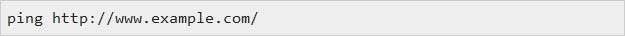 På den annen side vil ikke dette fungere som http://www.example.com/ er en HTTP Uniform Resource Locator (URL) , ikke et gyldig vertsnavn (selv om en del av det er et vertsnavn).
