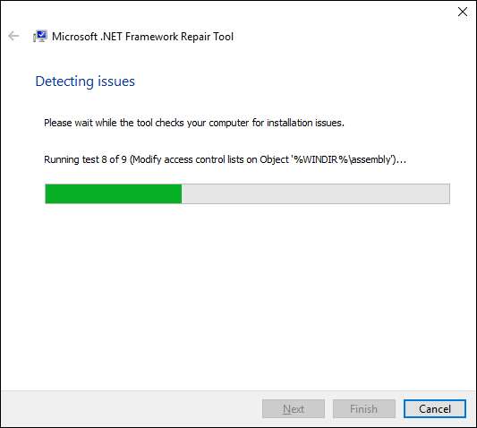 Hvis ikke noe av dette fungerer, kan du prøve å laste ned og kjøre Microsofts .NET Framework reparasjonsverktøy . Verktøyet støtter alle gjeldende versjoner av .NET Framework. Det hjelper deg med å feilsøke vanlige problemer med oppsett eller oppdateringer til .NET og kan kanskje reparere eventuelle problemer du har automatisk.