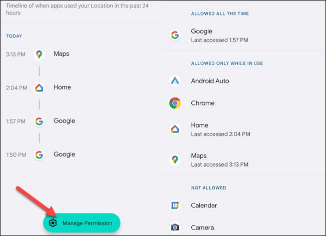 Knappen "Administrer tillatelse" tar deg til en meny hvor du enkelt kan justere hvordan hver app kan bruke denne tillatelsen. Alt dette gir deg mye bevissthet og kontroll over hvordan sensorene på enheten din blir brukt.