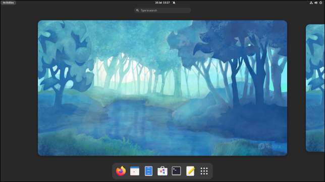 Forskjellen i GNOME 40 er at du ikke bare avslører kaien. For å se dock må du åpne aktiviteter oversikt. [1. 3]