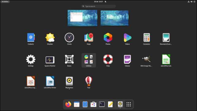 Dokken i GNOME 40 har beveget seg til bunnen av skjermen. Det pleide å være på venstre som standard, men du kan flytte den Hvis du velger å. Det kan bli satt til auto-hide også. Det ville gli ut av syne hvis skrivebordseiendoms var nødvendig ved et vindu. Det har nå blitt flyttet til bunnen av skjermen, uten et alternativ for å flytte den. [1. 3]