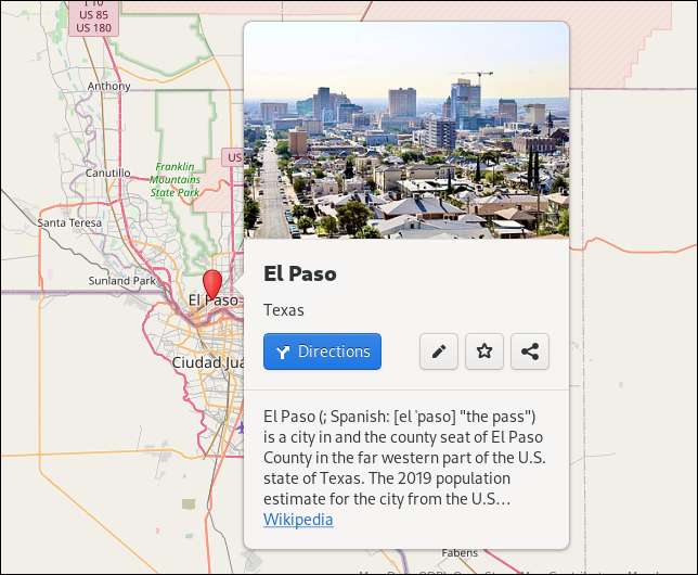 Når du søker etter et sted i kartprogrammet, viser det et panel av informasjon trukket fra Wikipedia.