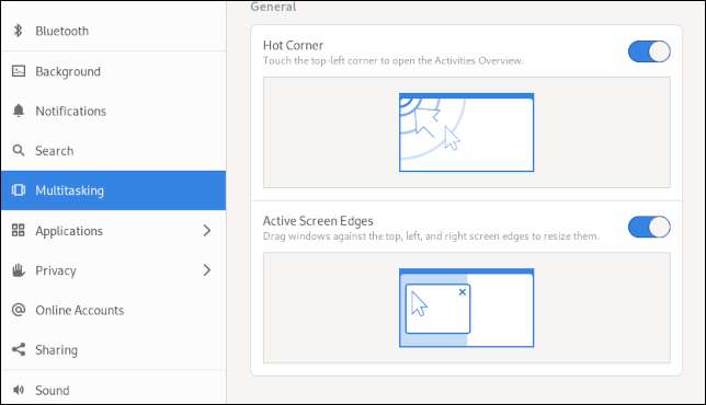 - Du kan deaktivere aktive skjermkanter. Dette er funksjonen som lar deg dra et vindu til en skjermkant og få GNOME til å endre størrelsen på vinduet til halvskjermbredde, fullskjermbredde og så videre.