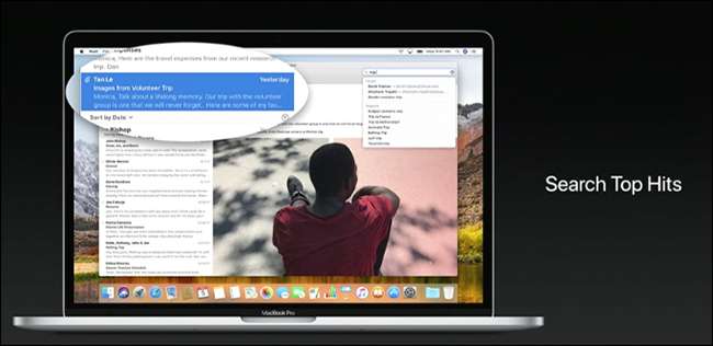MacOS Mail-appen vil ha den samme funksjonen, med Spotlight-drevne forslag øverst i søkeresultatene som anbefaler spesielle e-poster. Det er en liten justering, men det kan gjøre det lettere å finne bestemte e-postmeldinger litt raskere.