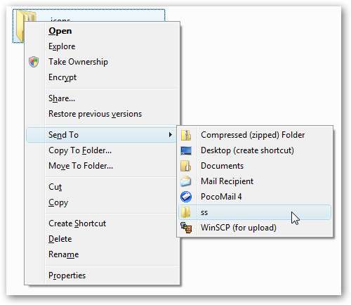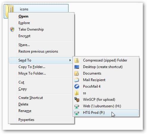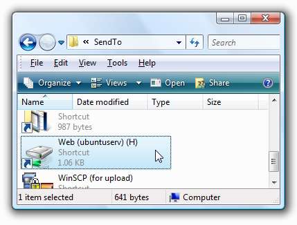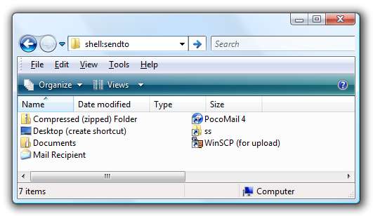 Hvis du fortsatt vil bruke SendTo-menyen for en bestemt stasjon, kan du opprette en snarvei manuelt. Type skall: sendto inn i adressefeltet, og dra deretter stasjonen inn i vinduet for å lage en snarvei.