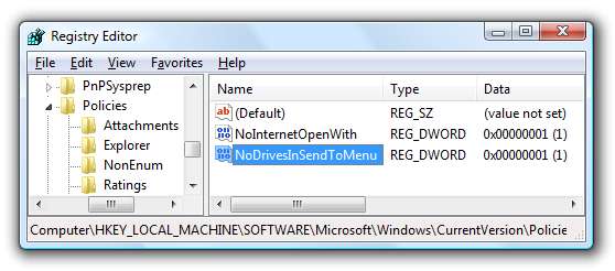 HKEY_LOCAL_MACHINE \ SOFTWARE \ Microsoft \ Windows \ CurrentVersion \ Policies \ Explorer