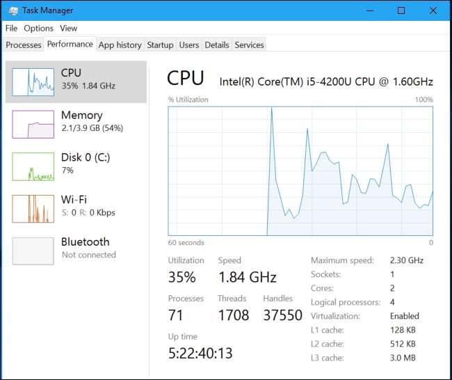 Dette estimatet kan også svinge basert på arbeidet datamaskinen din gjør i bakgrunnen. For eksempel kan Windows installere oppdateringer - som bruker mer CPU-ressurser, tapper batteristrøm raskere og senker estimatet. Selv om du bare surfer på nettet, bruker noen nettsteder - spesielt nettsteder med videoannonser - mer systemressurser enn andre.