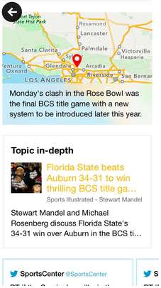 Hver “utgave” har bare rundt 10 historier eller så, de viktigste for øyeblikket, og når du går ned i et av elementene, vil du se en oppsummert historie fra alle nyhetskildene - men det er også en liste av kilder hvis du vil grave videre. Kart, Wikipedia-lenker og tweets om emnet er nederst i historiens visning. Du kan raskt sveipe fra en historie til en annen, og det er en liste over ekstra historier hvis du ikke har nok å lese.