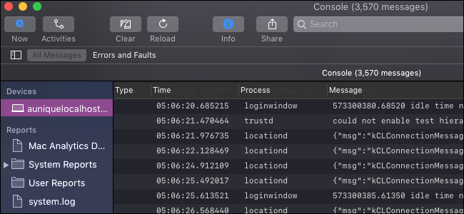 Console-appen i macOS er en systemvisning for feilsøkingsmeldinger og loggfiler. Du kan bruke den til å spore feil i applikasjoner eller bare få en ide om hva som skjer i systeme..