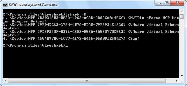Gdy już to zrobisz, uruchom tshark -i # polecenie, zastępując # numerem interfejsu, na którym chcesz przechwytywać.