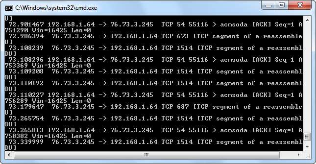 TShark działa jak Wireshark, drukując przechwycony ruch do terminala. Posługiwać się Ctrl + C kiedy chcesz zatrzymać przechwytywanie.