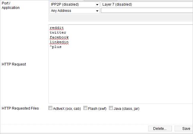 Na koniec upewnij się, że odznaczyłeś pole „Blokuj cały dostęp do Internetu”. Jeśli pole jest zaznaczone, komputer nie będzie w ogóle mógł uzyskać dostępu do internetu. Pojawi się nowy zestaw opcji. Te opcje umożliwiają filtrowanie ruchu na podstawie protokołów, takich jak RDP (Remote Desktop Protocol) lub ICMP (Internet Control Message Protocol), aby wymienić tylko kilka. W tym przykładzie nie będziemy mieć do czynienia z protokołami i po prostu zablokujemy dostęp do niektórych witryn internetowych, wpisując tylko ich nazwy w polu tekstowym „Żądanie HTTP”.