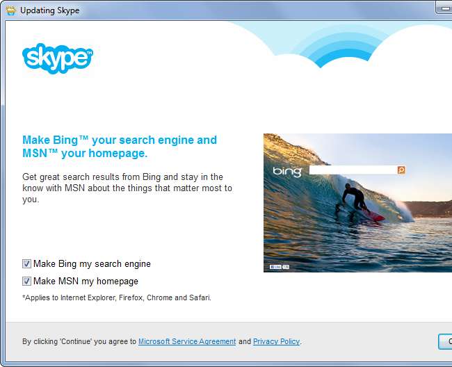 Robią to nawet programy firmy Microsoft - po zainstalowaniu programu Skype na komputer z systemem Windows spróbuje zmodyfikować ustawienia przeglądarki, aby korzystać z Bing, nawet jeśli specjalnie wybrałeś inną wyszukiwarkę i stronę główną. Ponieważ Microsoft daje taki przykład, nie jest zaskoczeniem, że wielu innych programistów poszło w jego ślady.