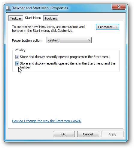 Czasami możesz chcieć wyczyścić historię listy skoku, w tym celu kliknij prawym przyciskiem myszy Start i wybierz Właściwości.