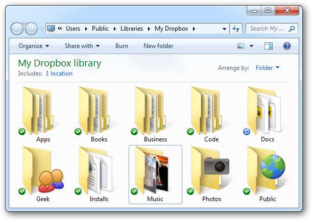 Tak, zgadza się. Możesz dodać go do menu Start… używając głupiego hacka do funkcji Biblioteki i zmieniając nazwę biblioteki Recorded TV na inną. Nie jest to idealne rozwiązanie, ale w ten sposób możesz uzyskać dostęp do swojego folderu Dropbox i wydaje się, że do niego należy.