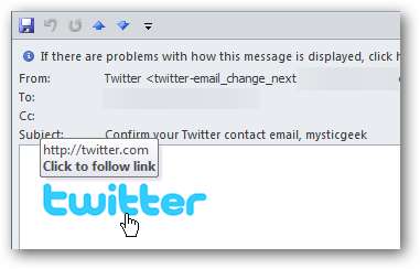 Następnie zostaną wyświetlone zdjęcia do wiadomości e-mail, w tym przypadku jest to logo Twittera.