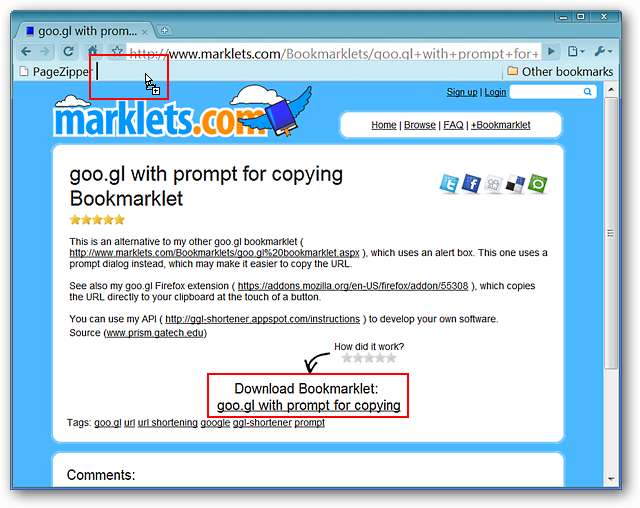 Aby dodać bookmarklet do przeglądarki, po prostu przeciągnij go na swój „Pasek zakładek” i przygotuj się do tworzenia tych skróconych adresów URL.
