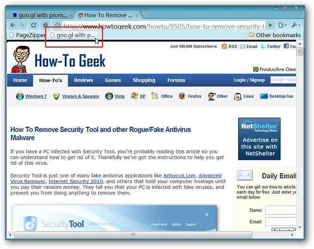 Na nasz przykład wybraliśmy jeden ze wspaniałych artykułów dotyczących usuwania złośliwego oprogramowania w witrynie. Wszystko, co musisz zrobić, to kliknąć bookmarklet, aby utworzyć skrócony adres URL.