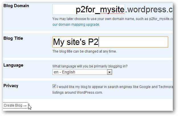 Jeszcze raz upewnij się, że używasz go na blogu, który chcesz poświęcić P2, więc jeśli chcesz użyć tego w projekcie pobocznym, możesz zainstalować WordPress na subdomenie na swoim serwerze, na przykład