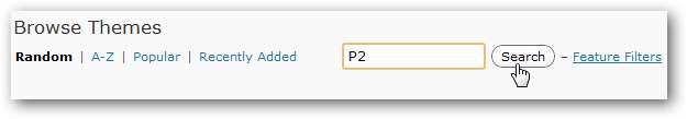 Wpisz P2 w polu wyszukiwania i kliknij Szukaj, aby znaleźć motyw na WordPress.com.