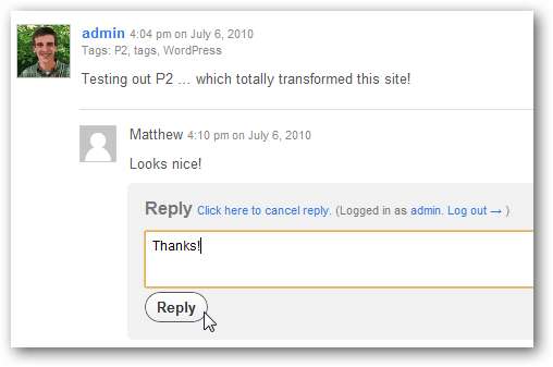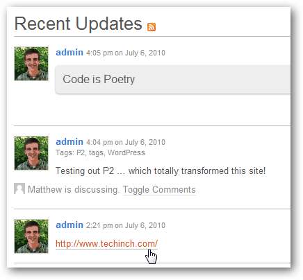 P2 to świetny sposób na szybkie publikowanie własnych rzeczy, ale jest naprawdę przydatny, gdy publikuje wiele osób. W ten sposób możesz używać go jako czatu grupowego lub tablicy dyskusyjnej, a wszyscy w Twoim zespole, klasie, firmie lub nie tylko mogą publikować rzeczy, aby wszyscy inni mogli je zobaczyć.