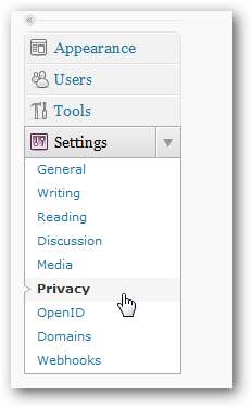 Możesz łatwo ustawić swój blog P2 jako prywatny na WordPress.com. Otworzyć Prywatność strona z Ustawienia menu po lewej stronie.