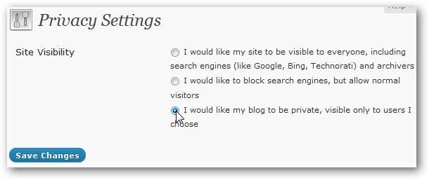 Teraz wybierz ostatni punkt, aby ustawić blog jako prywatny, i kliknij Zapisz zmiany .