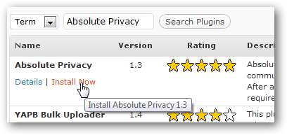 Wchodzić Absolutna prywatność w polu wyszukiwania, a następnie kliknij Zainstaluj teraz w opisie wtyczki Absolute Privacy.