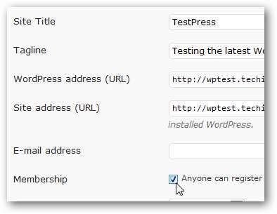 Teraz, gdy ktoś odwiedzi Twoją witrynę, zostanie przekierowany na stronę logowania WordPress. Możesz ręcznie utworzyć nowe konta dla swoich użytkowników lub, jeśli chcesz umożliwić ludziom rejestrację i dostęp do Twojego P2, otwórz stronę Ustawienia WordPress na swoim Pulpicie nawigacyjnym i sprawdź Ktokolwiek może zarejestrować pudełko.