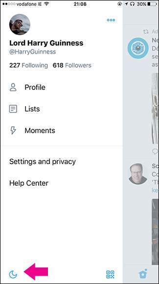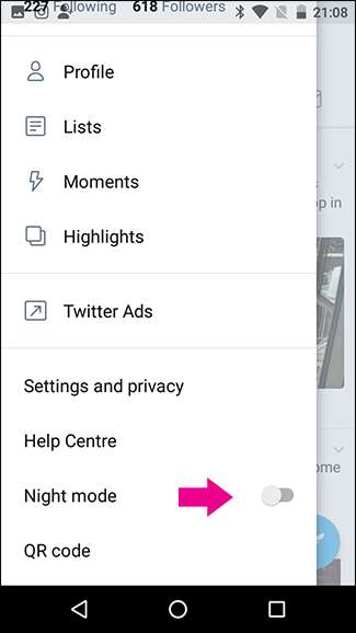 W systemie Android przełącz przełącznik z napisem Tryb nocny. W systemie iOS dotknij małej ikony półksiężyca.