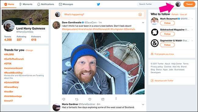 Wejdź na stronę Twittera i kliknij ikonę swojego profilu w prawym górnym rogu.