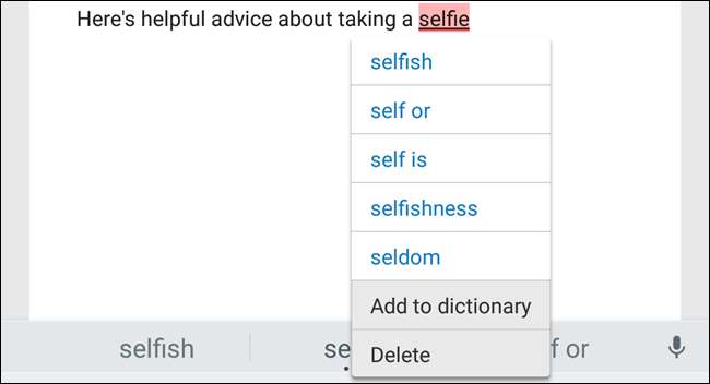 Jeśli używasz klawiatury innej firmy, na przykład Swype lub SwiftKey , może mieć inną metodę dodawania i usuwania słów ze słownika. Na przykład SwiftKey nie ma słownika w ustawieniach - słowa można dodawać tylko przez długie naciśnięcie ich w polu tekstowym. Możesz także usunąć słowa z SwiftKey, naciskając je długo na pasku autokorekty. Twój przebieg może się więc różnić w zależności od używanej klawiatury. Ale miejmy nadzieję, że to powstrzyma niektóre z tych błędów autokorekty!