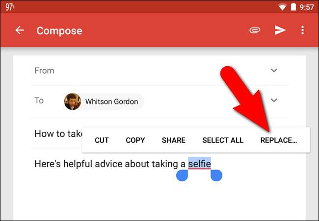 Kliknij dwukrotnie słowo, które chcesz dodać do słownika. Zostanie wyświetlony pasek narzędzi z kilkoma opcjami. Kliknij „Zamień”.