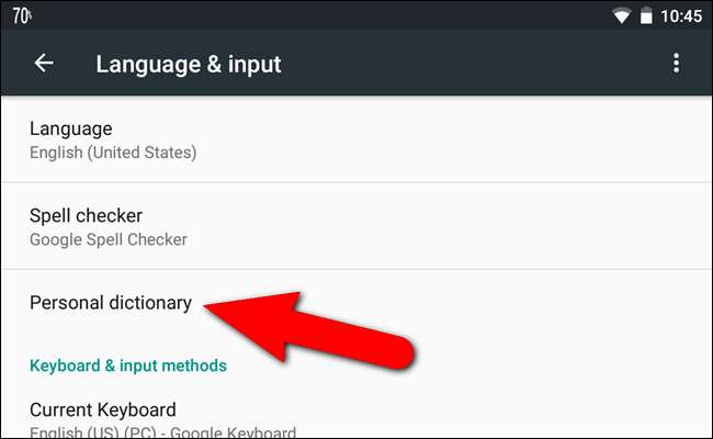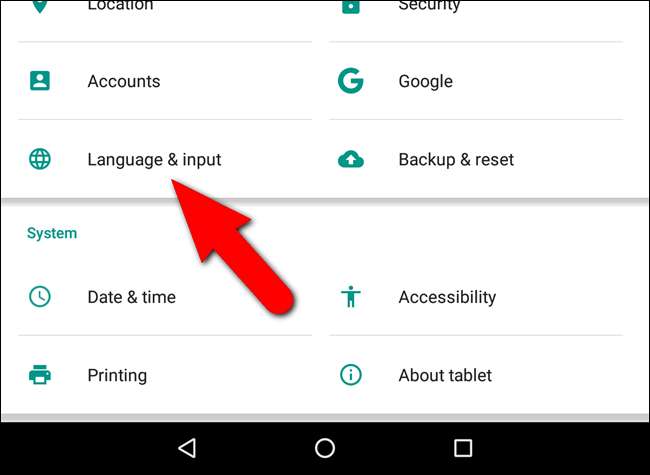 Puknij „Język i wprowadzanie” w sekcji „Osobiste” na ekranie „Ustawienia”.