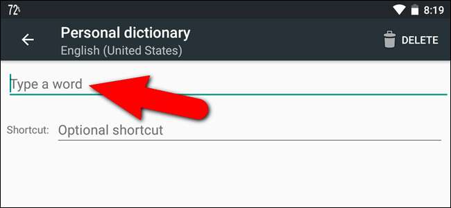 Stuknij w pierwszą linię, w której jest napisane „Wpisz słowo” i wpisz słowo lub frazę, którą chcesz dodać do słownika.