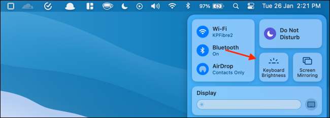 Otwórz Centrum sterowania, kliknij „jasność” klawiatura sterowania, a następnie przeciągnij go do paska menu.