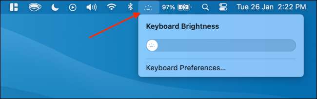 Teraz, klikając ikonę Keyboard Brightness z paska menu natychmiast pokaże suwaka jasności.