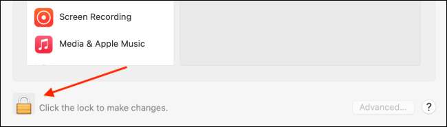 Tutaj wybierz zakładkę „Prywatność” i kliknij przycisk blokady, aby można było dokonać zmian.