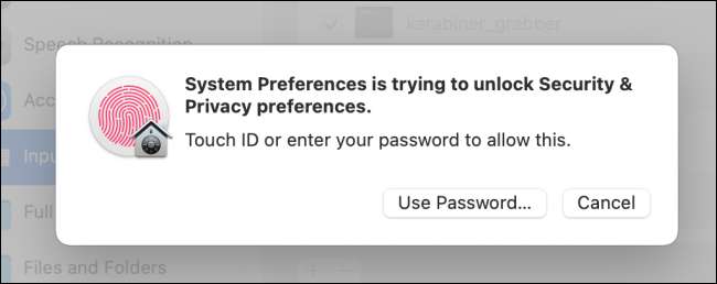 Skanowanie odcisku palca przy użyciu Touch ID lub wprowadź hasło, aby odblokować ustawienia.
