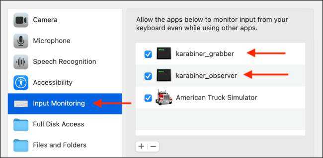 Z sekcji "Input Monitoring" kliknij znacznik wyboru obok opcji "Karabiner_grabber" i "Karabiner_observer".