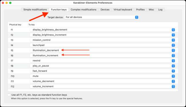 Wreszcie naciśnij klawisz F5, aby zmniejszyć jasność klawiatury i klawisza F6, aby go zwiększyć. Jeśli to nie zadziała od razu, zamknij i uruchom ponownie aplikację Karabinera Elements.