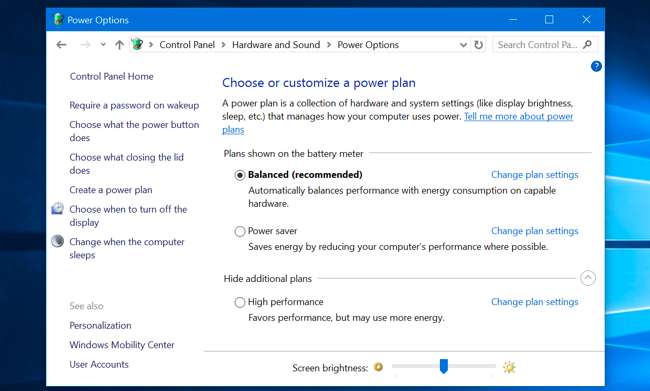 Aby to zmienić, otwórz Panel sterowania. Wybierz „Sprzęt i dźwięk”, wybierz „Opcje zasilania” i kliknij łącze „Zmień ustawienia planu” obok używanego planu zasilania. Prawdopodobnie korzystasz ze zrównoważonego planu zasilania.