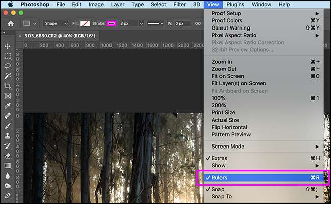 Jeśli nie widzisz władców na skraju dokumentu, przejdź do View & GT; Władcy lub używać skrótu klawiatury Control + R (Command + R na Mac).