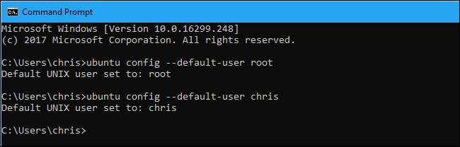 Kiedy pierwszy zainstaluj Ubuntu lub inną dystrybucję Linuksa na Windows 10 , pojawi się prośba o utworzenie nazwy użytkownika i hasła UNIX. Bash automatycznie loguje się na to konto użytkownika po uruchomieniu powłoki, ale w razie potrzeby możesz zmienić te poświadczenia.