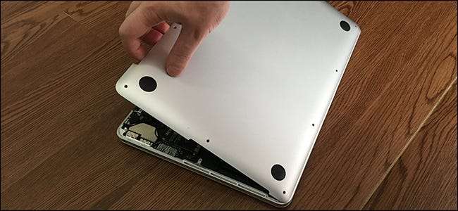Teraz, zaczynając od Touch Bar MacBook Pro w 2016 r. (W tym modele bez paska Touch Bar), firma Apple wprowadziła nowy krok w usuwaniu dolnej pokrywy. Oprócz śrub pentalobe należy również użyć przyssawki i kostki do gitary, aby całkowicie zdjąć osłonę. Ten przewodnik iFixit pokazuje, jak to zrobić.