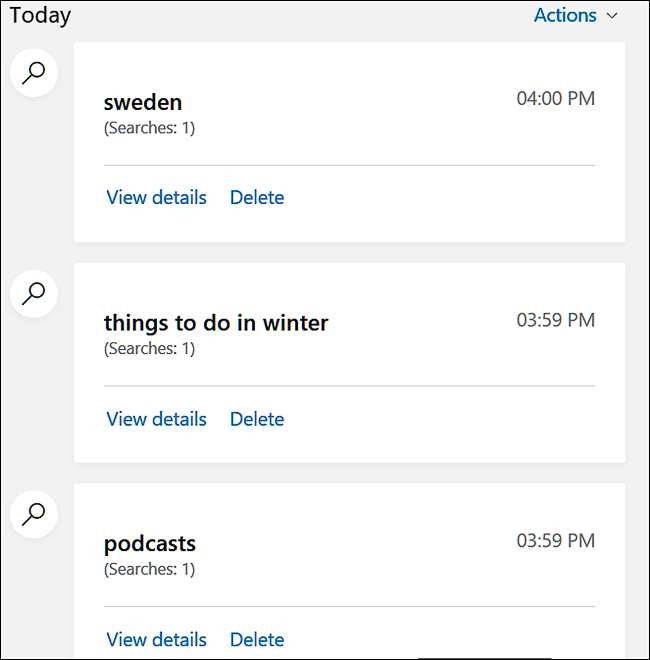 Spowoduje to otwarcie karty „Historia aktywności” na pulpicie nawigacyjnym i skupienie się na poprzednich wyszukiwaniach. Jeśli chcesz wyczyścić całą historię wyszukiwania, możesz po prostu kliknąć łącze „Wyczyść aktywność” w prawym górnym rogu listy wyszukiwania.