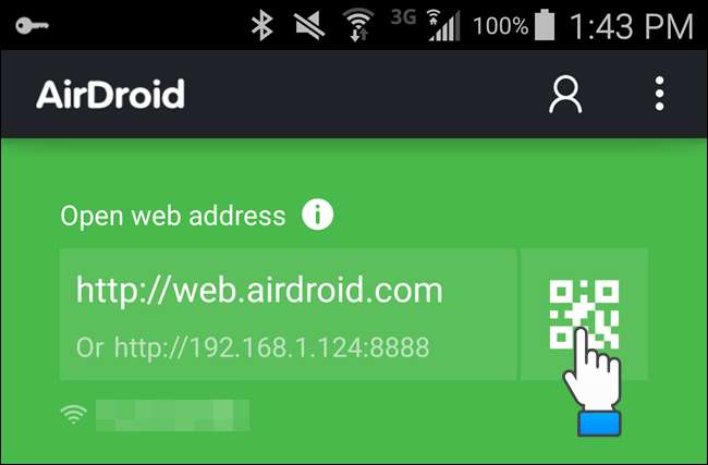 W aplikacji AirDroid wyświetlany jest adres internetowy.