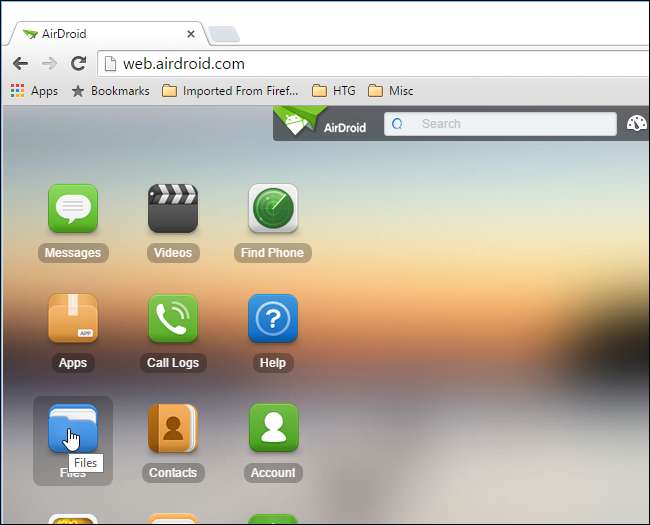 Istnieją różne metody przesyłania plików, w tym AirDroid Web (przy użyciu przeglądarki, o której rozmawialiśmy) i AirDroid Desktop (co pokażemy w dalszej części tego artykułu). Wskaż „AirDroid Web” na liście „Ja” na ekranie „Przesyłanie plików”. Zwróć uwagę, że w opcji „AirDroid Web” jest niewyświetlona plakietka.