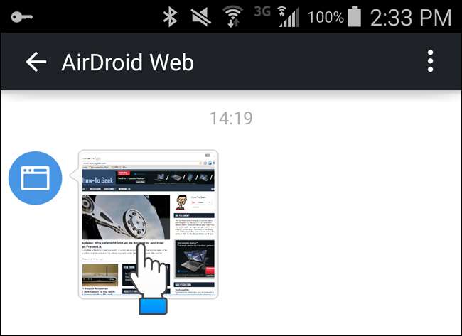 Pliki przesyłane między urządzeniem a komputerem są wyświetlane na ekranie „AirDroid Web”. Aby uzyskać dostęp do różnych opcji działań, które można wykonać na przesłanym pliku, dotknij pliku na ekranie „AirDroid Web”. Na ekranie wyświetlane są różne opcje udostępniania lub otwierania pliku, w zależności od typu pliku.