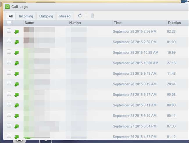 Panel „Dzienniki połączeń” zapewnia dostęp do historii połączeń.